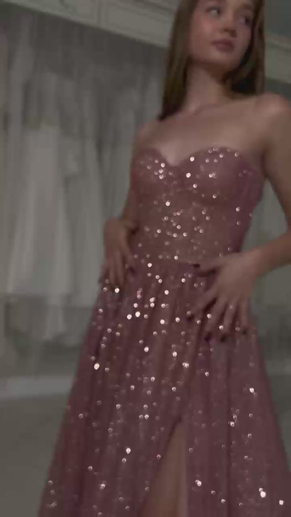 Elegant Sequins Newest 2024 Long Prom Dresses, A-line Wedding Guest Dresses, Popular Evening Dresses